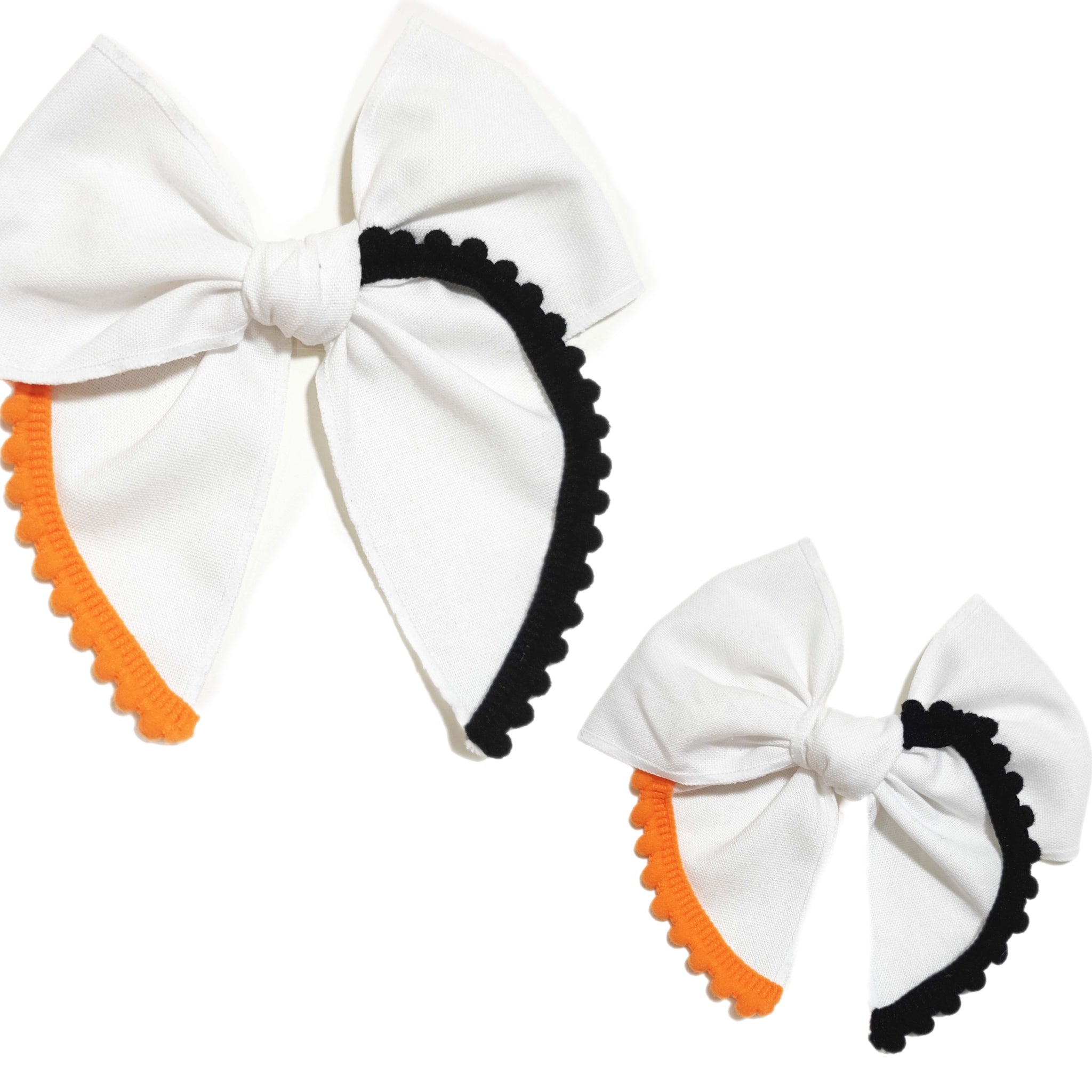 White Pom Pom Edge Pre-Tied Fabric Bow